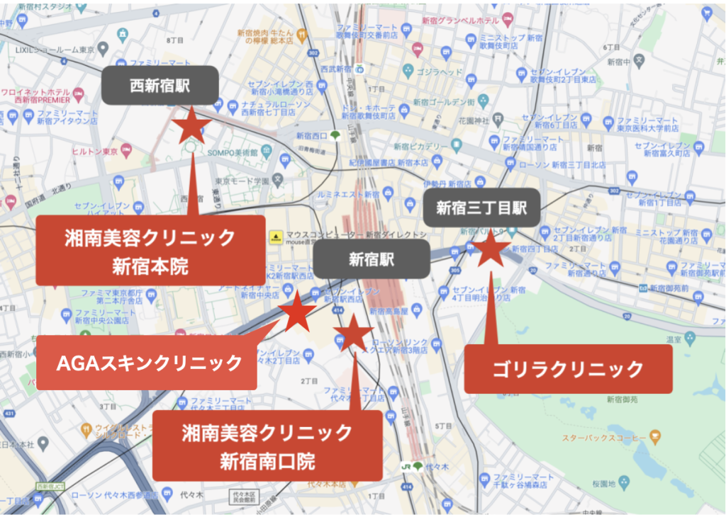 新宿のクリニックを比較しましたが、以下の3院がおすすめです。