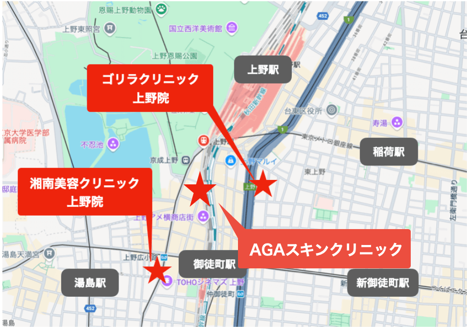 上野でプロペシアを手に入れたい方には、以下の3院がおすすめです。